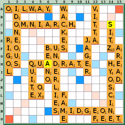 Other moves: VAIN 15A 28, AVION 12B 27, AHINT 9B 24, NOVA 12B 23, VAN 12D 23