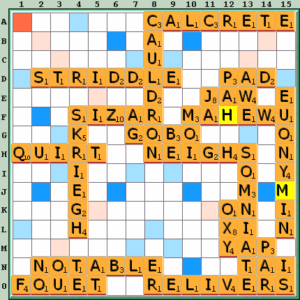 Other moves: HINGE H4 26, HINGS H4 26, NEIGH H8 26, SHINNE H3 26, EHING H8 22
