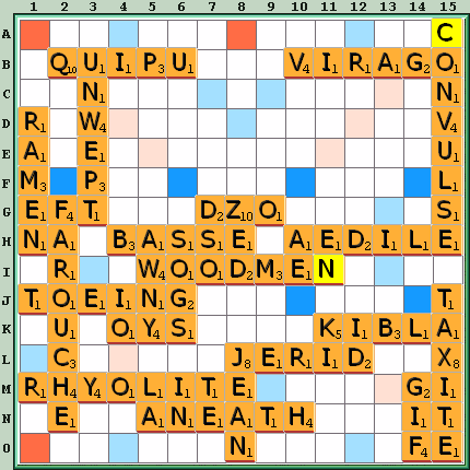 Other moves: JANTEE L8 26, AHENT 3C 25, LETHEAN 14H 24, NEATH N6 24, HEEZED 8D 23