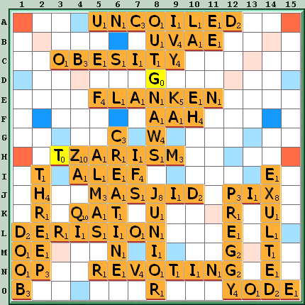 Other moves: TOGATE M10 18, EOAN 11K 17, GROUT K11 14, WAN 11L 14, TOYED O10 13