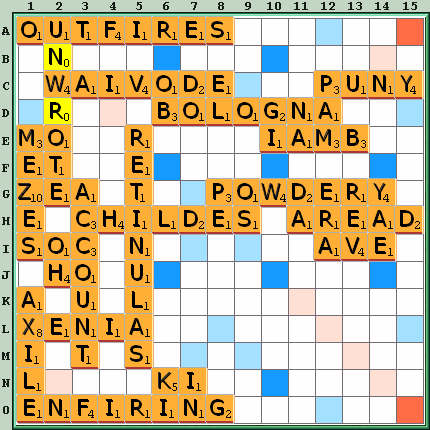 Other moves: FIL 6F 29, DARNING 11G 25, DARING 11G 23, FINI 14B 23, (R)IF D2 22