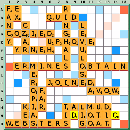Other moves: ADOWN K11 24, ODEA N1 21, ANOW K11 20, ENDOW D10 20, AVO K11 18