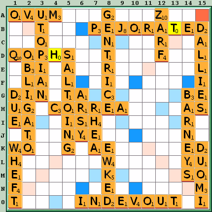 Other moves: HOWFED 3I 56, HOUFED A1 51, THEOW 1K 47, HOUF A1 42, FOUTH A1 36