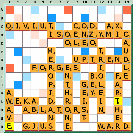 Other moves: QUIT C3 28, QI C6 26, QI G3 26, QI K5 22, QUITE G2 22