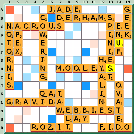 Other moves: ZIT O6 45, ZORI 15G 41, AZURITE 11B 38, ZULU 10F 33, LUZ 10H 32