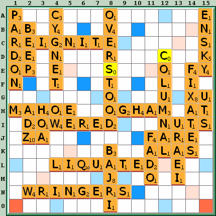 Other moves: OPAQUE E1 34, QAT F6 32, QI 6B 31, QUEAN B11 28, QUAI(S) E4 26