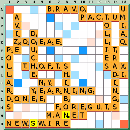 Other moves: RENAYI(N)G N2 88, BERAYING L8 82, YEARNI(N)G N2 76, RENAYING K2 74, RENAYING K6 74 GRAINY 3A 30 susieq8182