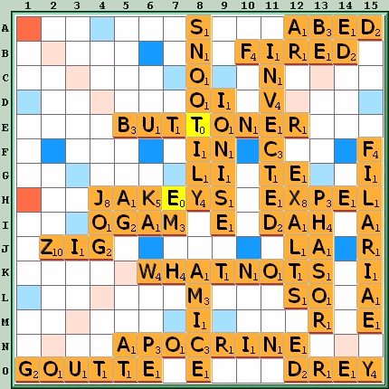 Other moves: BU(T)TONER E6 68, REBUT(T)ON E3 68, BURSTONE A5 61, RUBSTONE A5 61, JETON 4H 24