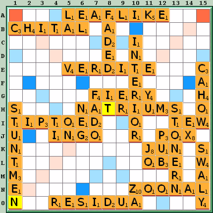 Other moves: PIOTED N2 33, POOD 12L 28, DOPIER G5 26, EPIDOTE L7 26, DIP 12J 25