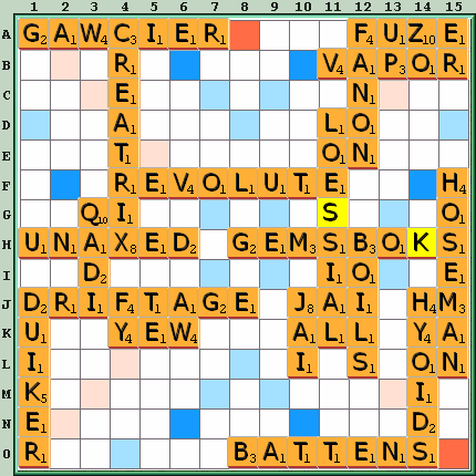 Other moves: ROSIN 13K 26, RISU(S) G7 22, SILO(S) G7 22, SOLU(S) G7 22, SORU(S) G7 22