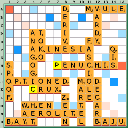 Other moves: ECHINU(S) H3 78, (P)ENUCHI H8 78, (Q)UINCHE H8 78, ECHINU(S) H4 74, ECHINU(S) H7 74