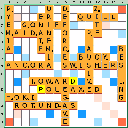 Other moves: PREMY 1A 36, PRIMY 1A 36, RUPEE B4 34, YIPE 12A 34, YAP B4 33