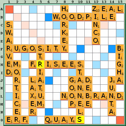 Other moves: WOODPILE B6 78, DOWP 15L 37, DOWD 15L 34, PROWLED C7 34, DOWL 15L 31