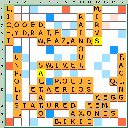 Other moves: VIRU(S) 12A 42, MINU(S) 12A 38, MUIR(S) 12A 38, MUNI(S) 12A 38, LICHTIN(G) 1A 36