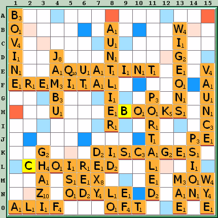 Other moves: NAEVI 1D 27, BANI 12C 26, BANTU E5 26, OBA 12B 25, BANT E5 24