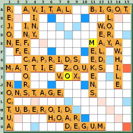 Other moves: BLIVE A1 30, VERLIG A4 30, BERG 13B 29, LIEF 13A 29, FLEG E3 27