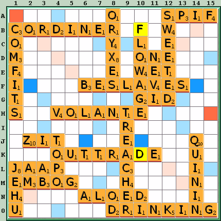 Other moves: TWEEDY C3 30, WEETE 12B 28, DETOX D4 26, DOW I5 25, WEE I7 25