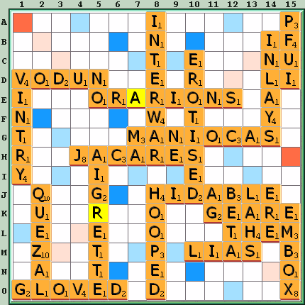 Other moves: RESOR(C)IN O4 74, G(A)RRISON J5 70, ROSIN(E)R J8 70, INTRORS(E) M3 68, IN(T)RORSE C3 68