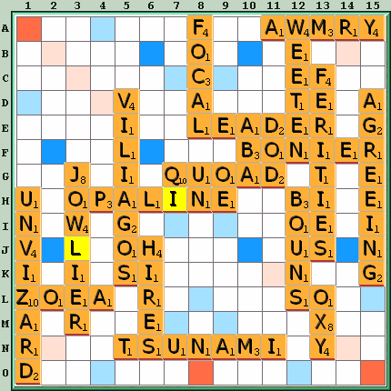 Other moves: IZARS 1K 42, ZINS 1L 39, ABRIN H11 33, ABRIS H11 33, BAIRNS F10 29