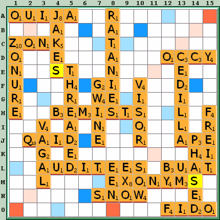 Other moves: ACTORLY B8 28, CYCLO D11 26, CLARY B6 24, COALY B6 24, TEENY 8K 24