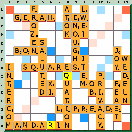 Other moves: MANDI(R)A 9E 83, MAIDAN(S) 9B 76, DOMAINA(L) N7 74, DOMANIA(L) N7 74, TAMA(R)IND L8 74
