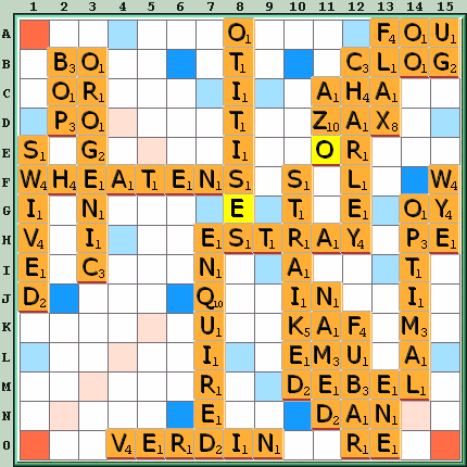 Other moves: OUGLIE 2J 23, CLOU B12 22, CLUE B12 22, LEGION 7A 22, GEL 2B 18