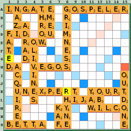 Other moves: ENOLIC 14A 28, PILCROW 11A 28, OI 4B 24, WINO M11 23, WORN M11 23