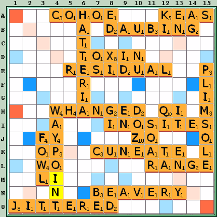 Other moves: DAUBING N7 73, AGUED 14F 31, BUND 3J 31, BUNG 3J 31, BUDA 3J 30