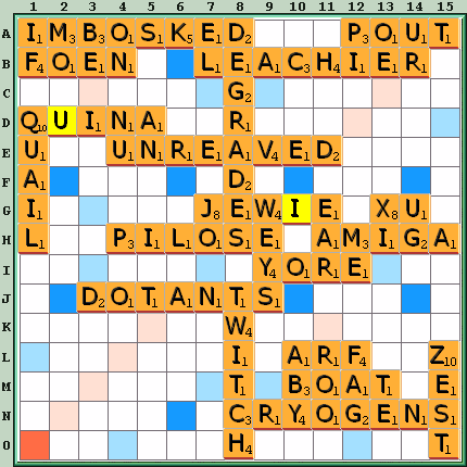 Other moves: GEMSBOK 14H 44, OBEISM J5 42, BESMOKE B2 34, GEMSBOK C8 34, SMOKE J11 32