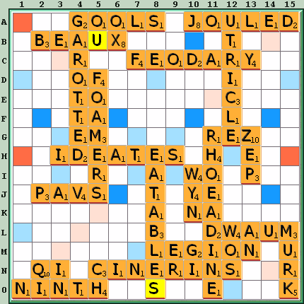Other moves: RETICULA K1 70, CURLIEST 9B 66, UTRICLE 10A 65, TRIOSE 12J 27, LUETIC 3D 21