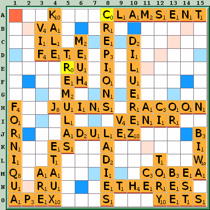 Au 21e coup, FORNIQUA 1H 107 --- FORNIQUER v. (p.p.inv.) [cj. aimer]. Avoir des relations sexuelles.