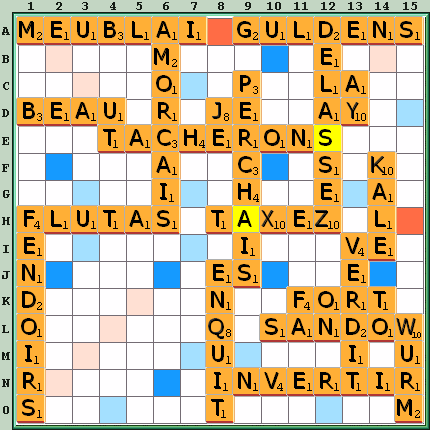 Au 13e coup, FLUTAS H1 30 --- FLUTA n.m. Poisson d'Asie. --- FLÛTER v. [cj. aimer]. Dire avec un son analogue à celui de la flûte.