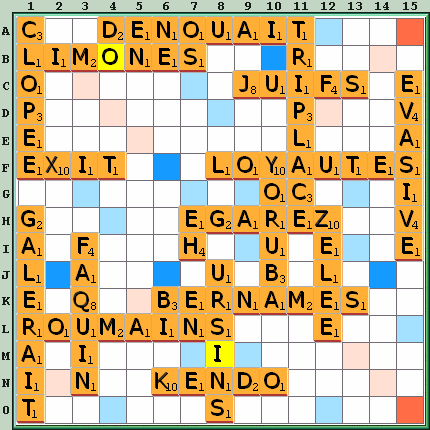 Sous-tops : M(A)LINES 7C 77, OSM(A)NLIE 7A 77, LIM(O)NES 7C 76, L(A)MINES 7C 76, ÉLIM(O)NS M6 75