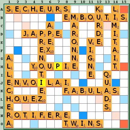 Au 1e coup, YOU(P)I H4 46 --- YOUPI interj. (= youpie, youppie).
