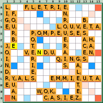 Au 17e coup, HAN 14F 33 --- HAN adj. Relatif à une dynastie chinoise. --- HAN interj. et n.m. (inv. mais han adj.) Cri sourd émis en frappant.