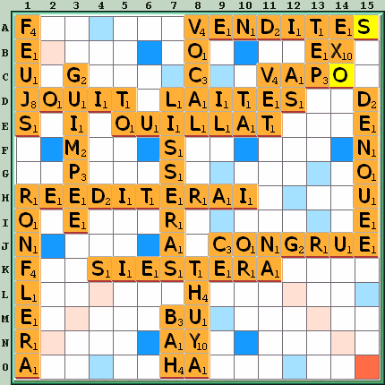 Au 14e coup, DÉNOUÉE 15D 30 --- DÉNOUER v. [cj. aimer].