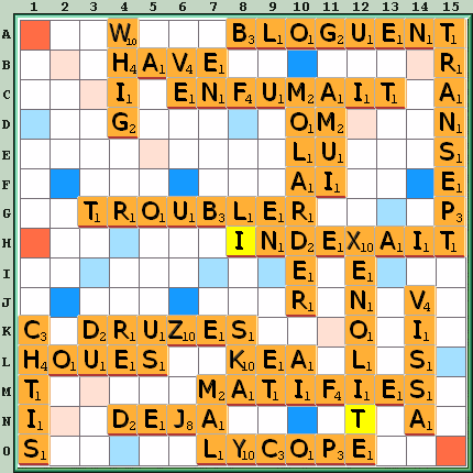 Au 12e coup, BLOGUENT A8 86 --- BLOGUER v. (p.p.inv.) [cj. aimer]. Tenir un blog en ligne.