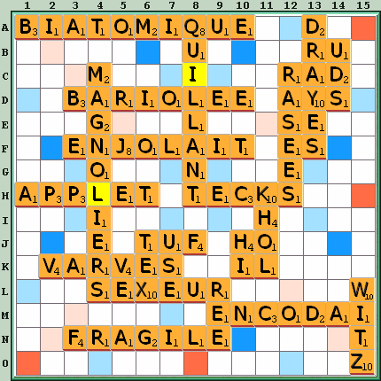 Au 8e coup, BIATOMIQUE A1 60 --- BIATOMIQUE adj. Dont la molécule est formée de deux atomes.