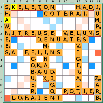 Au 10e coup, S(K)ELETON A1 74 --- SKELETON n.m. Sp., Anc. Long toboggan qui glisse sur une piste de neige.